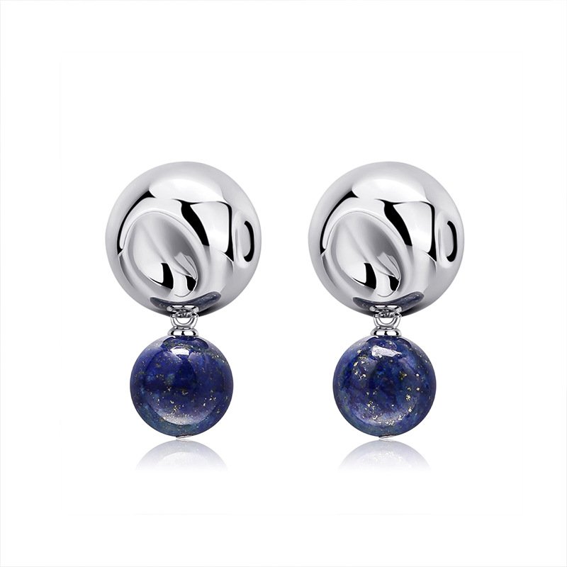 Exquisite vintage natural lapis lazuli silver ball earrings