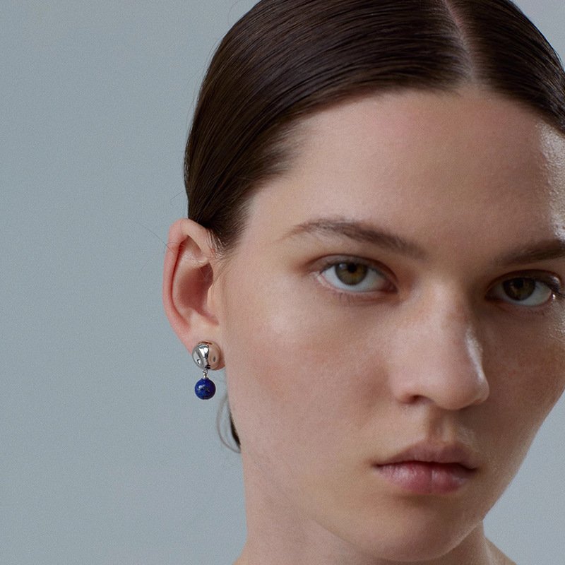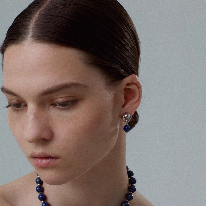 Each piece is crafted from recycled brass and Natural lapis lazuli. Our 14K white gold jewelry is plated with rhodium, giving it a unique color and adding shine and durability.