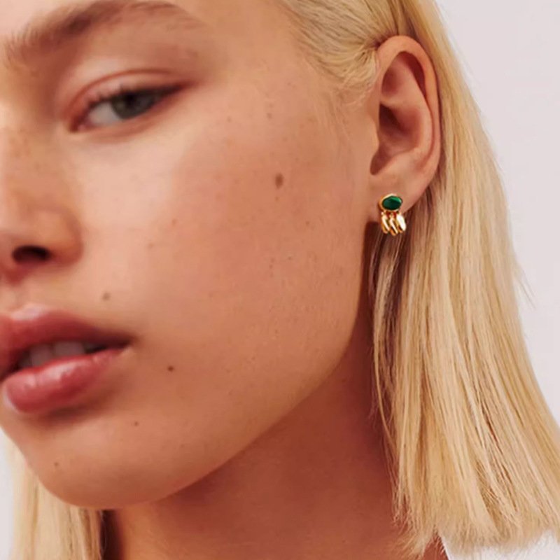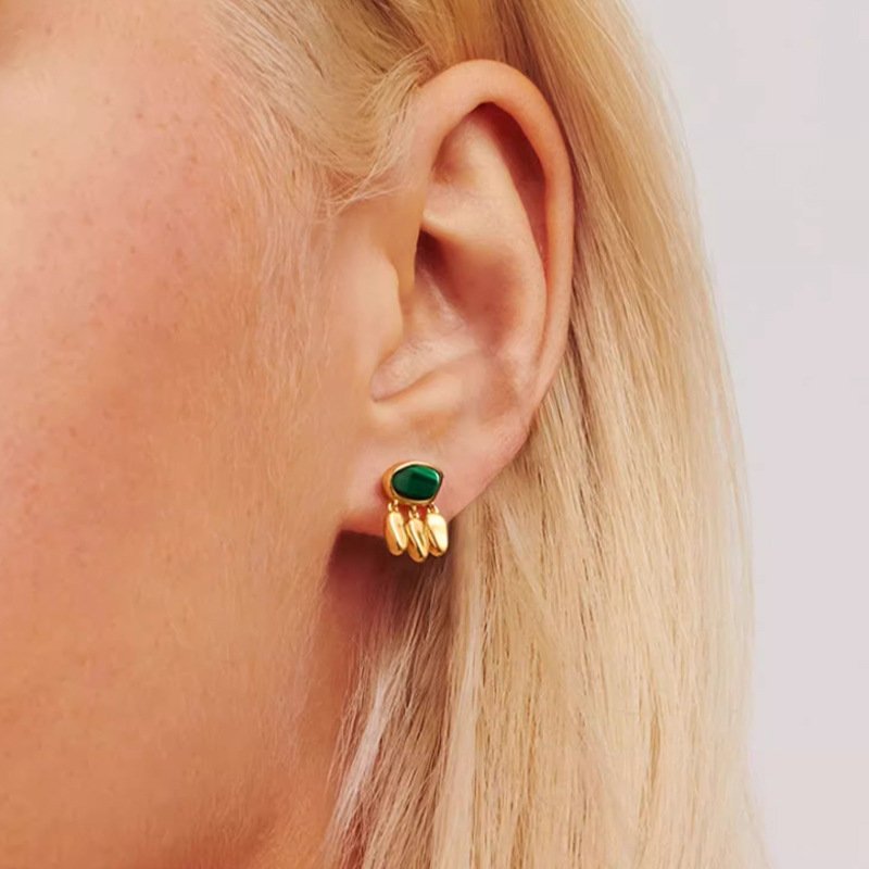 Our 18K gold jewelry is durable and perfect for everyday wear. Each piece is crafted from recycled brass and malachite.