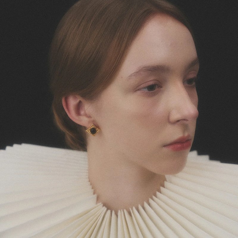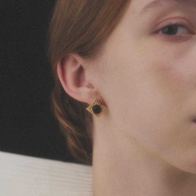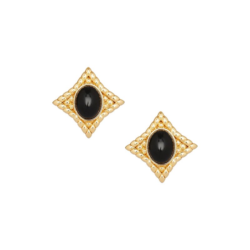 High-end design diamond-patterned black onyx stud earrings