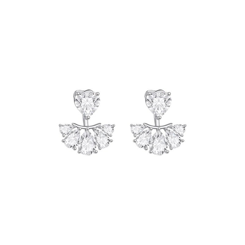 Design-inspired zircon heart-shaped fan-shaped pendant earrings
