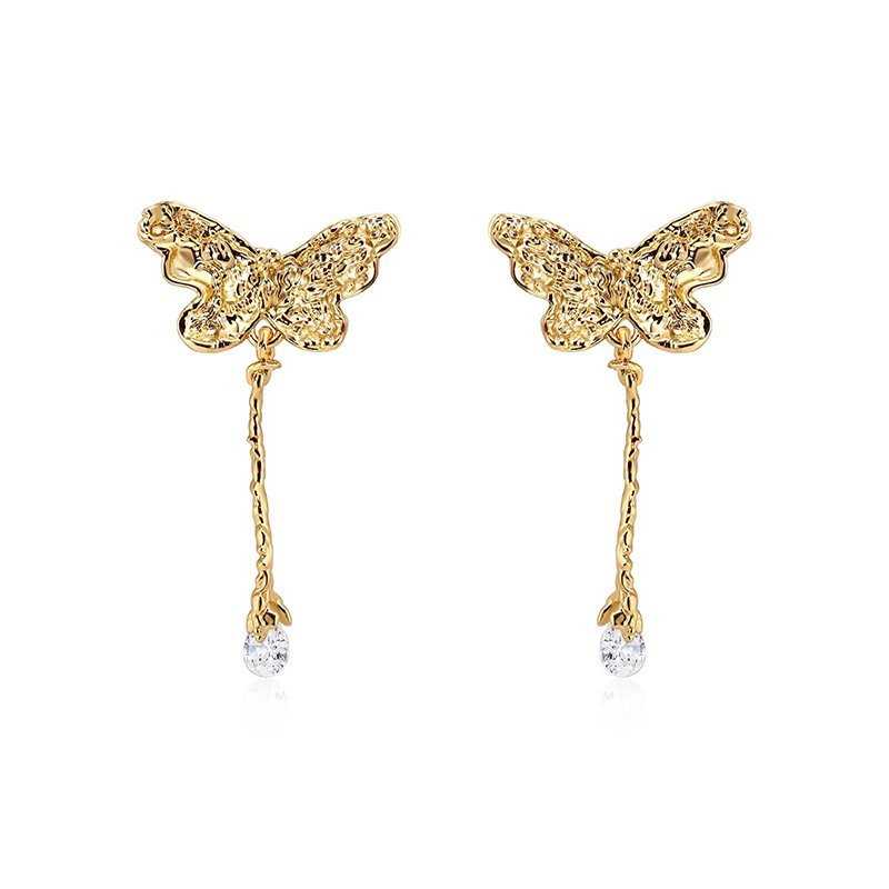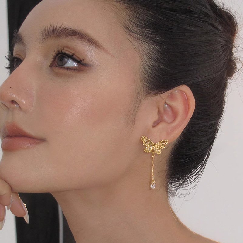 Delicate butterfly tassel zircon stud earrings