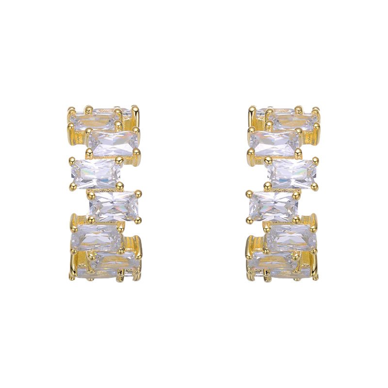 Super sparkly C-shaped cubic zirconia irregular earrings