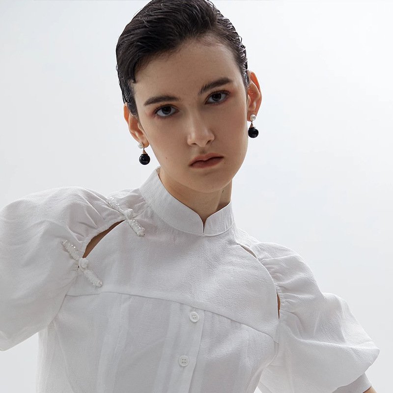 French retro style small black ball pearl earrings
