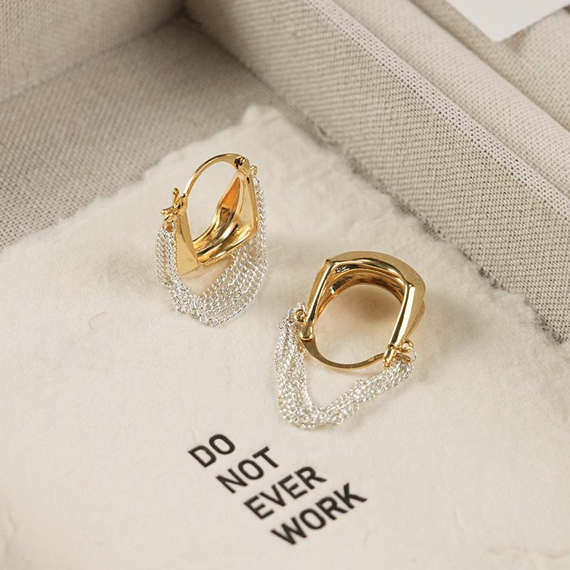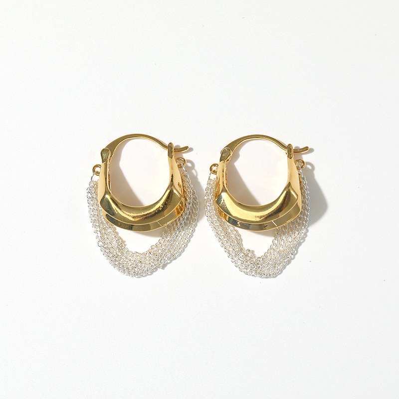 The combination of mesh tassels and metal creates a sophisticated, minimalist aesthetic.