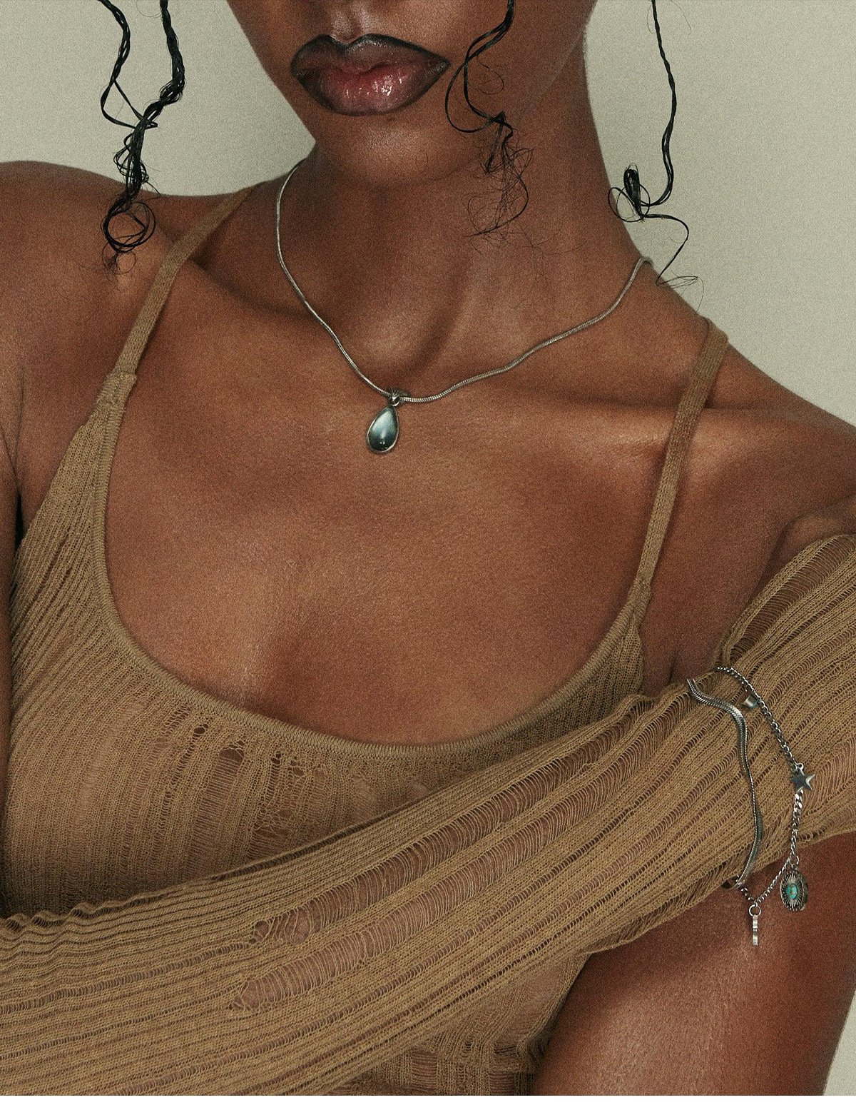Each piece is crafted from recycled brass and resin. Our 14K white gold jewelry is plated with rhodium, giving it a unique color and adding shine and durability.