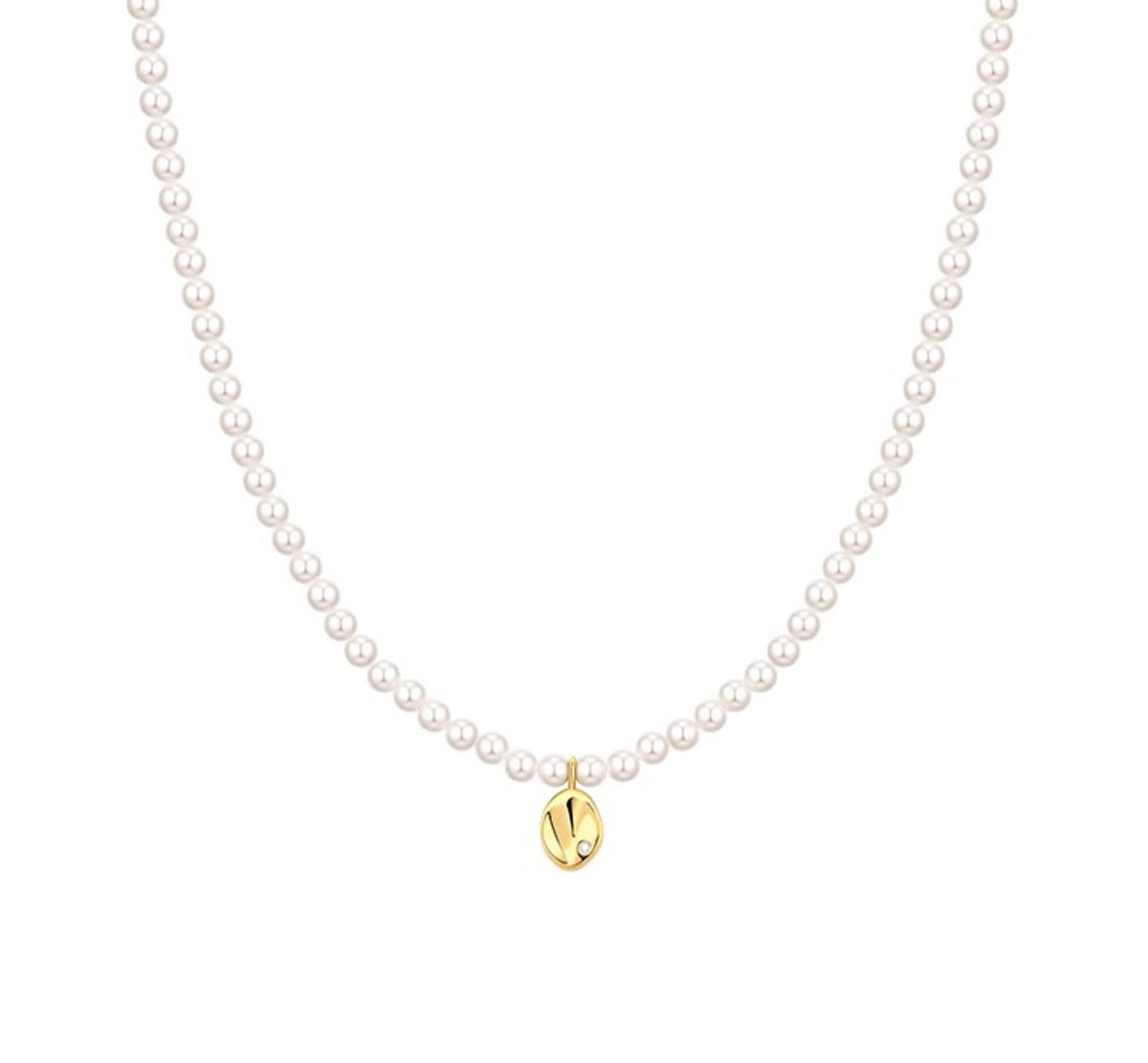 Swarovski pearl and metal disc necklace