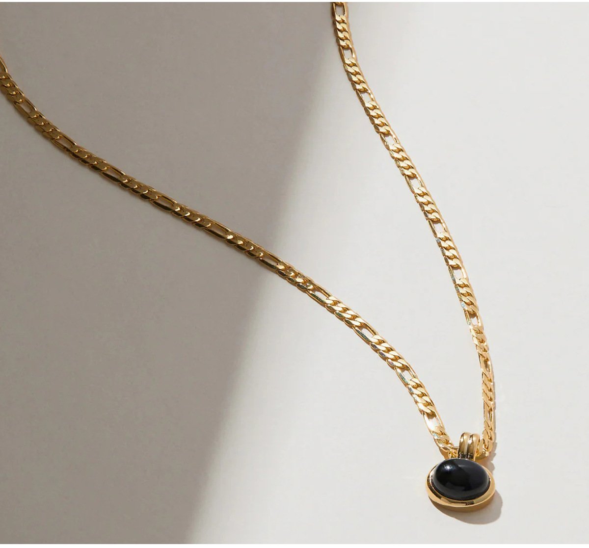 Our 18K gold jewelry is durable and perfect for everyday wear. Each piece is crafted from recycled brass and black agate.