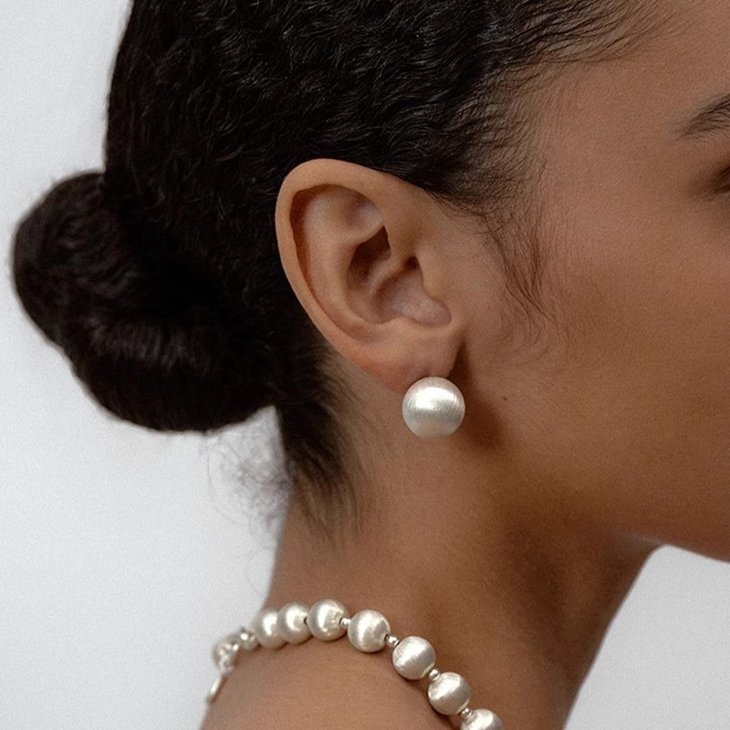 Each piece is crafted from recycled brass. Our 14K white gold jewelry is plated with rhodium, giving it a unique color and adding shine and durability.