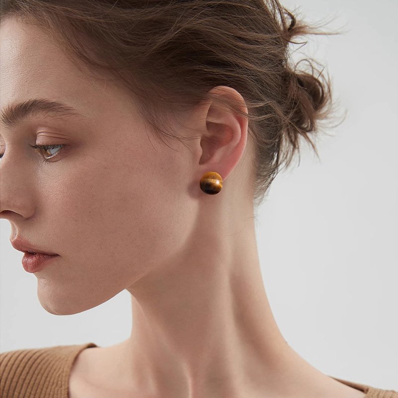 Simple Tiger Eye Stone Stud Earrings